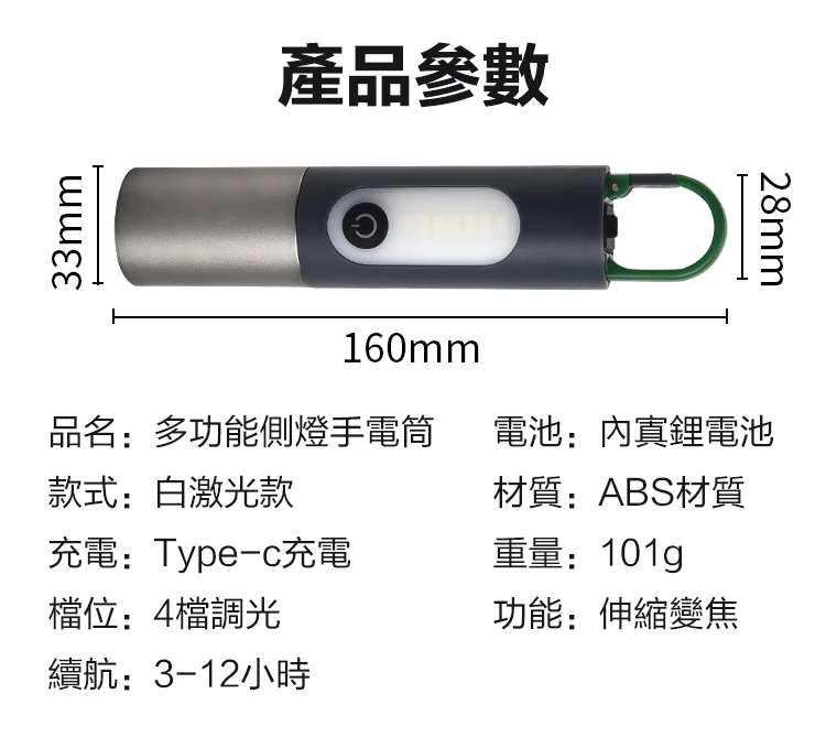 戶外多功能,鋁合金伸縮變焦强光手電筒