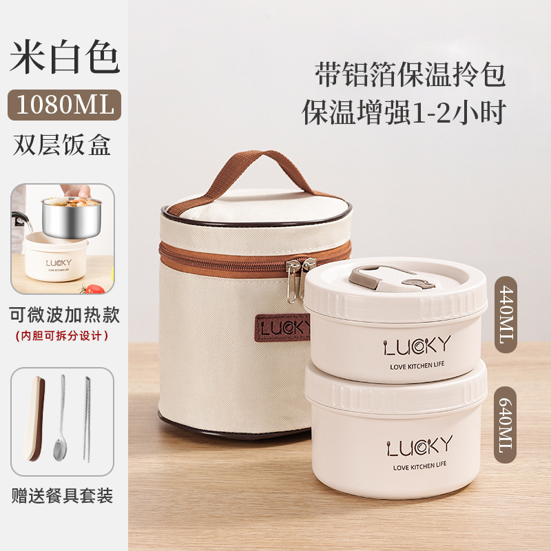 5分鐘前日式便攜保溫飯盒送餐具套餐 - 可微波【兩個裝】+勺筷+保溫提包NT$799