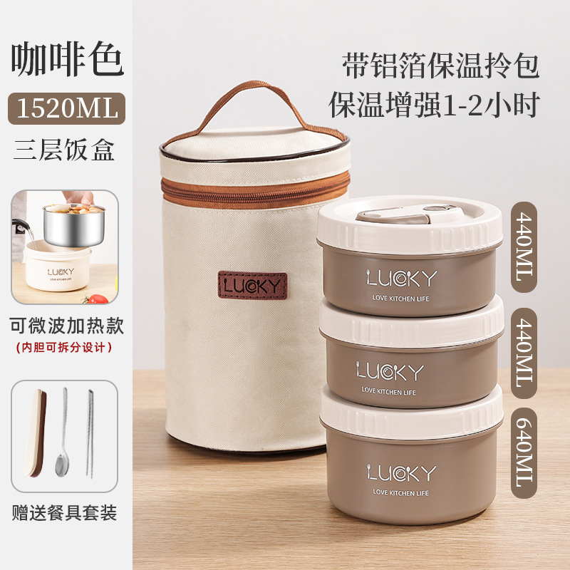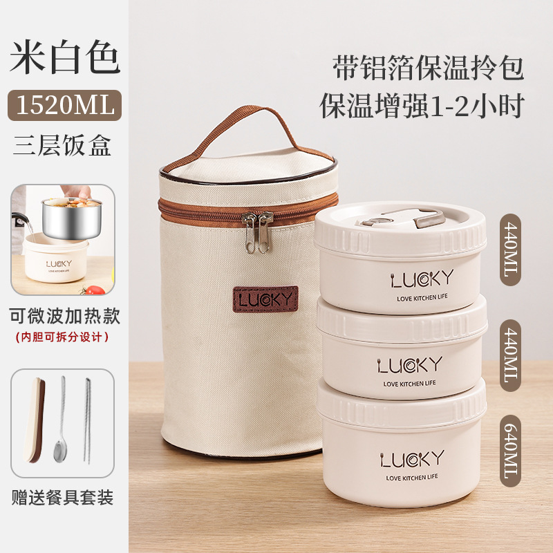 2分鐘前日式便攜保溫飯盒送餐具套餐 - 可微波【三個裝】+勺筷+保溫提包NT$1060