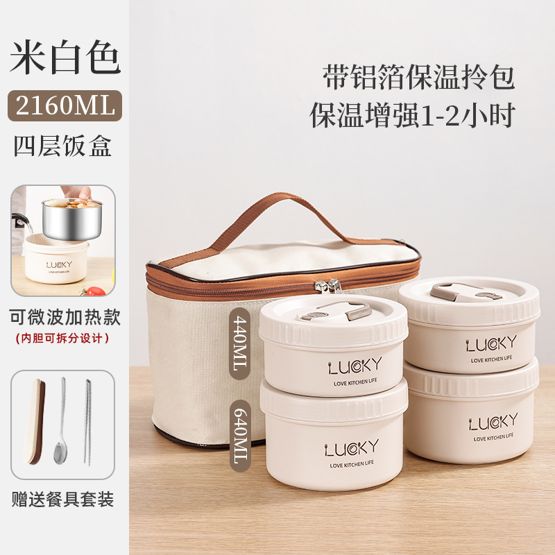 4分鐘前日式便攜保溫飯盒送餐具套餐 - 可微波【四個裝】+勺筷+保溫提包NT$1350