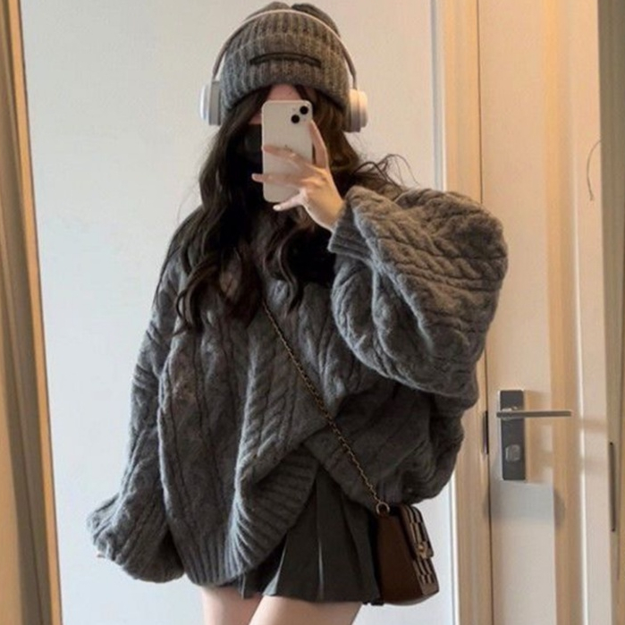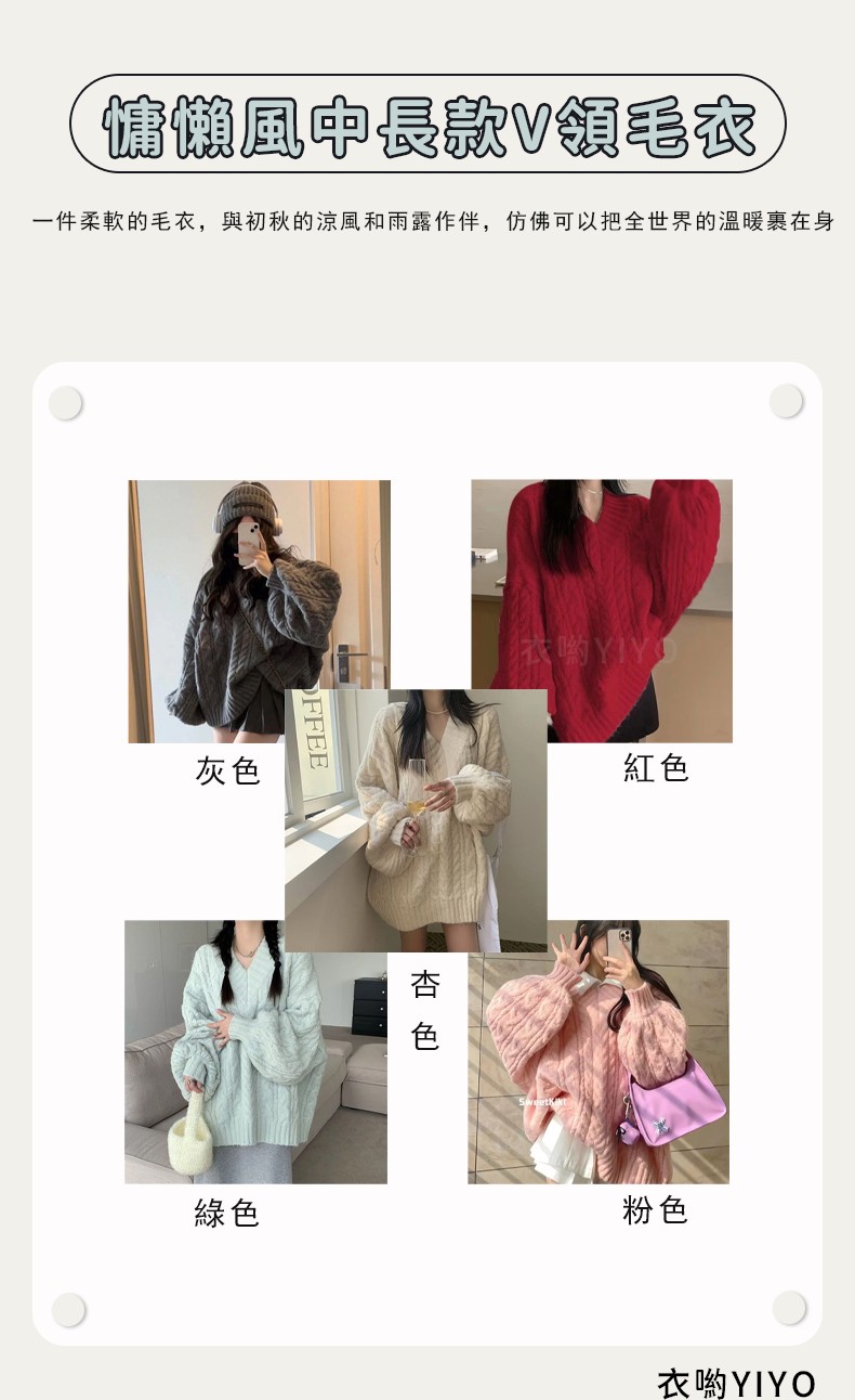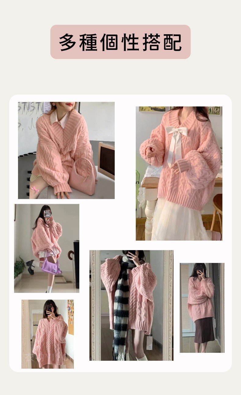 半小時前冬季爆款//台灣發貨+熱賣針織上衣 韓版法式V領麻花毛衣//加厚寬鬆慵懶風軟糯針織衫秋冬上衣 寬鬆上衣 毛毛外套 - 閨蜜團購【二件】NT$1298