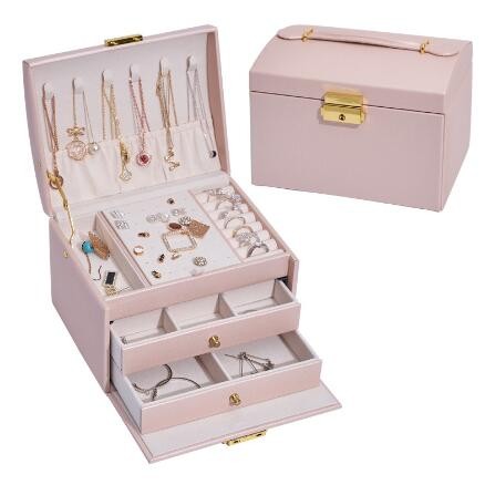 20分鐘前帶鎖三層抽屜首飾盒 。大容量,巨能裝,滿足女孩子收集癖,各種首飾裝裡面,防灰防塵防氧化,不易丟,超好用 - NT$1699三入組