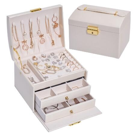 20分鐘前帶鎖三層抽屜首飾盒 。大容量,巨能裝,滿足女孩子收集癖,各種首飾裝裡面,防灰防塵防氧化,不易丟,超好用 - NT$1299兩入組