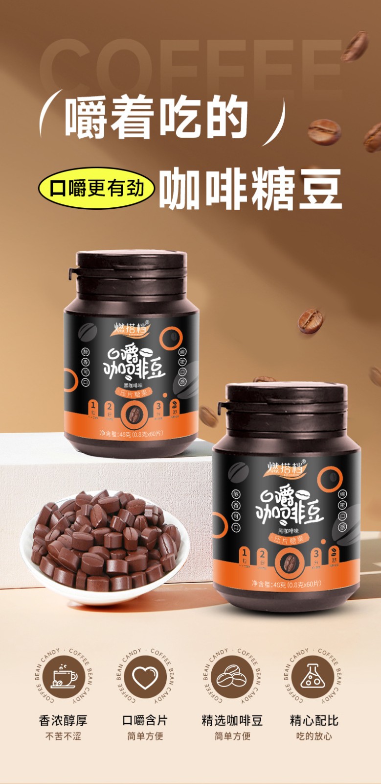 5分鐘前【口嚼咖啡豆糖】嚼著吃的咖啡豆糖,入口醇香,綿密口感,優選咖啡豆,加班熬夜、長時間開車,隨時都能嚼 - 均價139!十入組NT$1399
