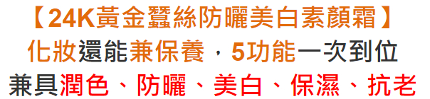 11分鐘前【黃金蠶絲防曬美白素顏霜】榮登素顏界的天花板!脫口罩後必收「媽生霜」登場,化妝保養兼防曬1瓶hold全場!!美白、淡斑、防曬,三效合一,夏日必備這一瓶就夠了! - 【最優惠】買三送五 NT$1399