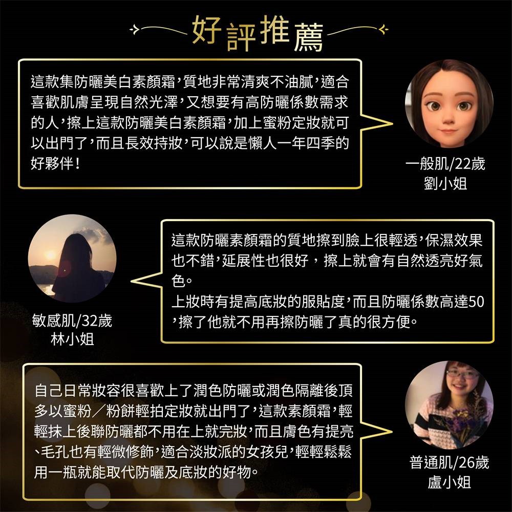 20分鐘前【黃金蠶絲防曬美白素顏霜】榮登素顏界的天花板!脫口罩後必收「媽生霜」登場,化妝保養兼防曬1瓶hold全場!!美白、淡斑、防曬,三效合一,夏日必備這一瓶就夠了! - 【最優惠】買三送五 NT$1399