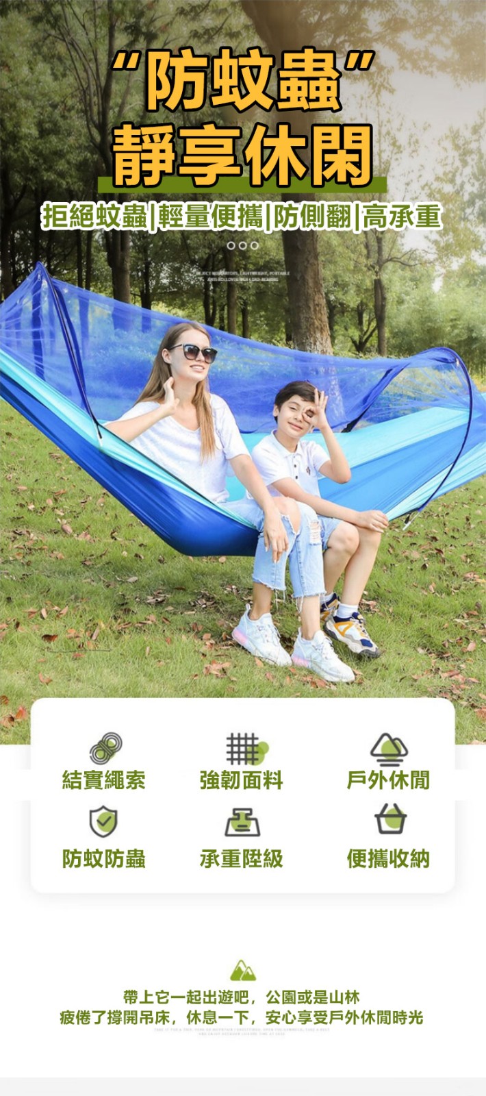 25分鐘前全自動速開戶外帶蚊帳吊床 - 【限時下殺】承重700公斤 速開蚊帳吊床【帶蚊帳 三米綁繩 8號扣】/2入組NT$2098