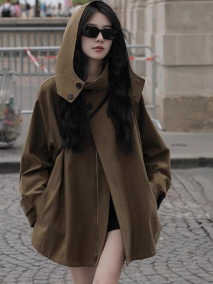 5分鐘前【現貨爆款】秋冬新款 斗篷風衣外套 美拉德英倫風 高品質連帽工裝 - 優惠價一入組NT$1398