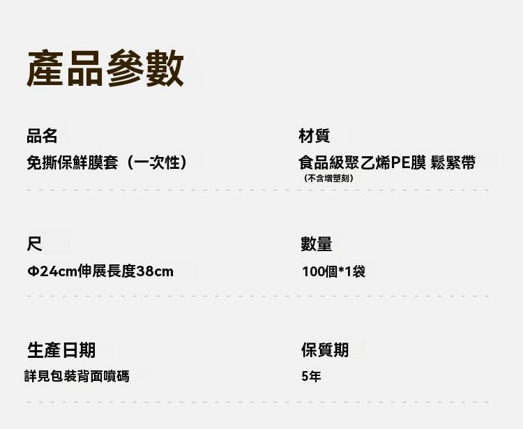 11分鐘前新款保鮮膜套 食品級材質,彈力縮口,任何大小、形狀都能輕鬆套上,保鮮不跑味,方便快速,乾淨衛生,廚房必備好物! - 超夯特惠:五入組(500個)NT$998 再贈送驚喜禮品一份!-NT$998