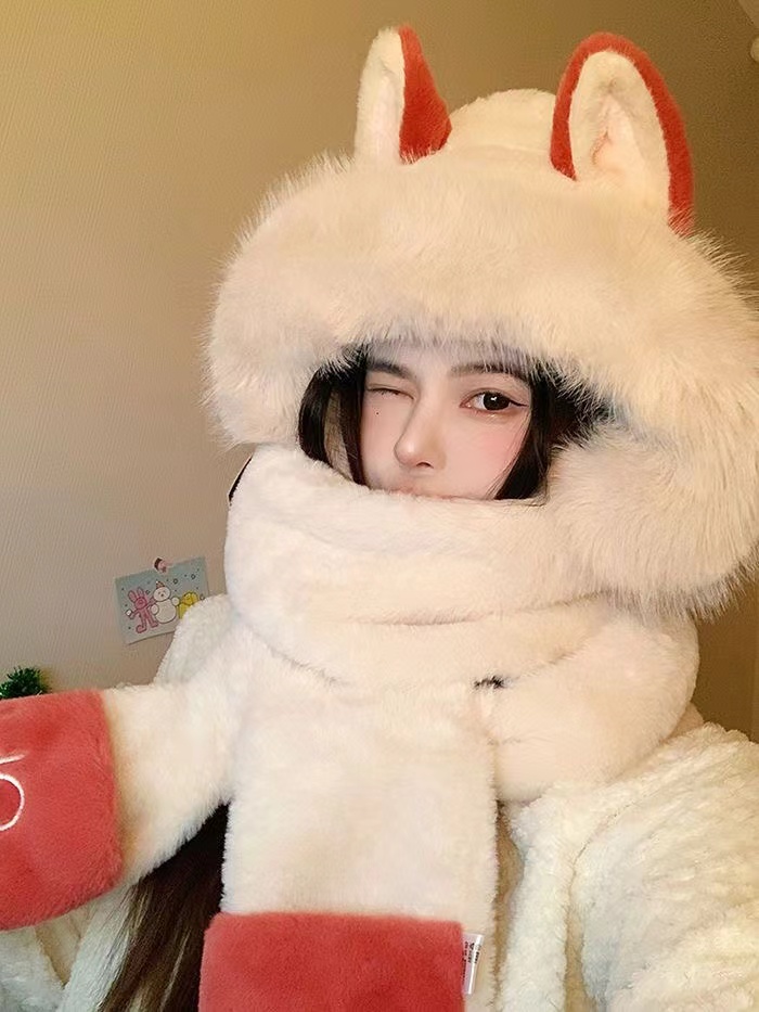 7分鐘前冬季爆款#火狐狸圍巾 帽子一體 保暖 圍脖 日韓 可愛 女生 百搭 情人節 春節 禮物 生日禮物 交換禮物 - 【狂殺特賣】團購三入組$1399