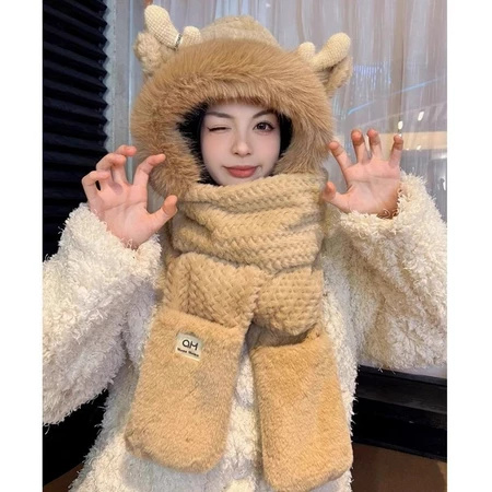 20分鐘前【熱銷免運】新款可愛帽子圍巾一體女冬季連帽圍脖加厚保暖毛絨三件套騎車 毛線帽 針織帽 毛帽 小熊造型 可愛毛帽 - 【超夯活動】閨蜜兩入組$1099