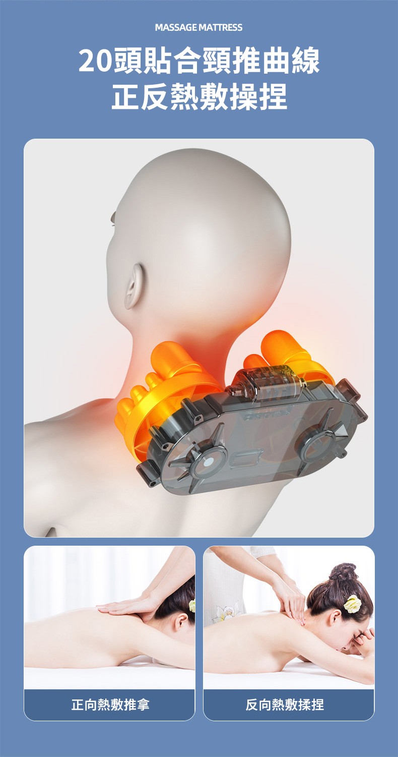 20分鐘前多功能全身按摩床墊 | 電動加熱頸椎、腰部、背部、腿部全方位按摩器,舒緩身心疲勞 - 6鍵旗艦款(6鍵揉捏+震動+氣囊+10電機+腰部熱敷)