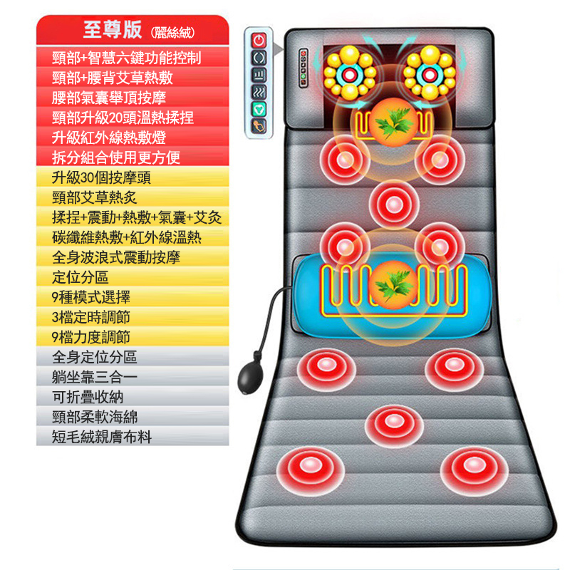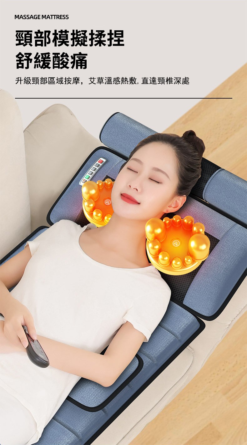15分鐘前多功能全身按摩床墊 | 電動加熱頸椎、腰部、背部、腿部全方位按摩器,舒緩身心疲勞 - 6鍵旗艦款(6鍵揉捏+震動+氣囊+10電機+腰部熱敷)