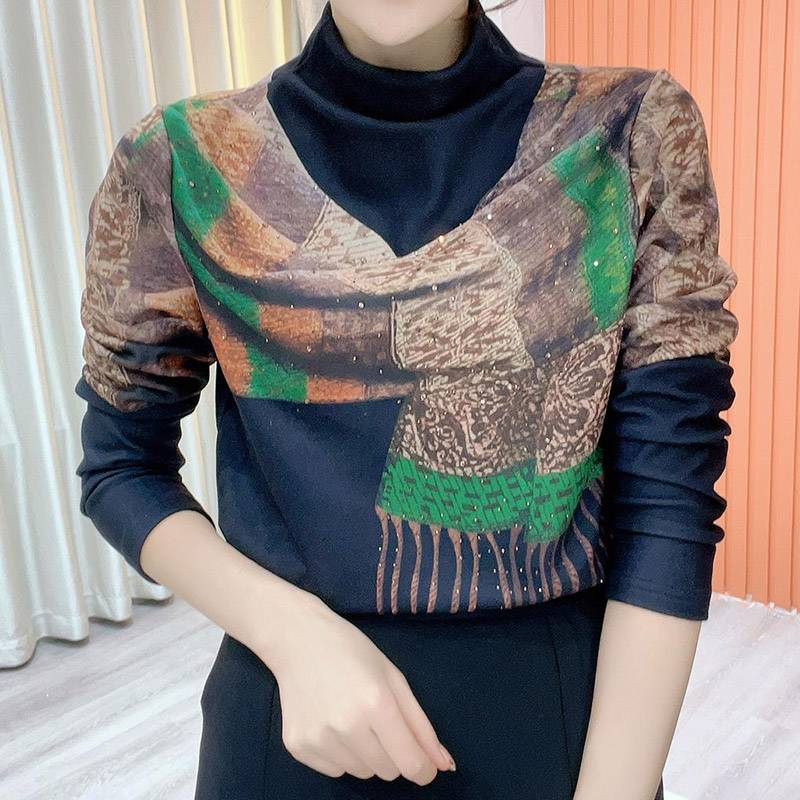 5分鐘前任選買1送1,設計感印花圍巾打底衫,時尚百搭,減齡遮肉顯瘦,內裡德絨保暖不紮膚, 每個色都好看! - 【買一送一】 二入組,NT$1098均價549/1件