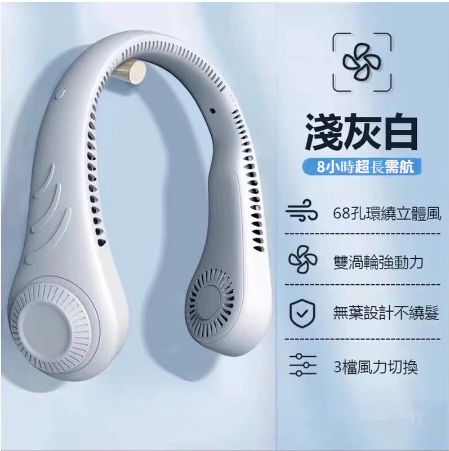7分鐘前【24小時連續使用超長續航】#掛脖風扇 #3檔自由調節長續航 免運費 貨到付款 - 【白色-無葉設計不饒發】