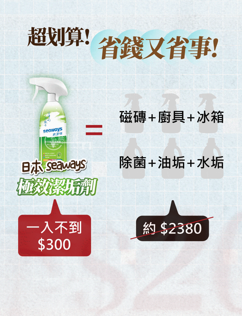 12分鐘前全屋煥然一新日本瘋搶除垢劑【Seaways極效潔垢劑】極效去汙X乾淨透亮 - 極效潔垢劑【2入】再享免運!