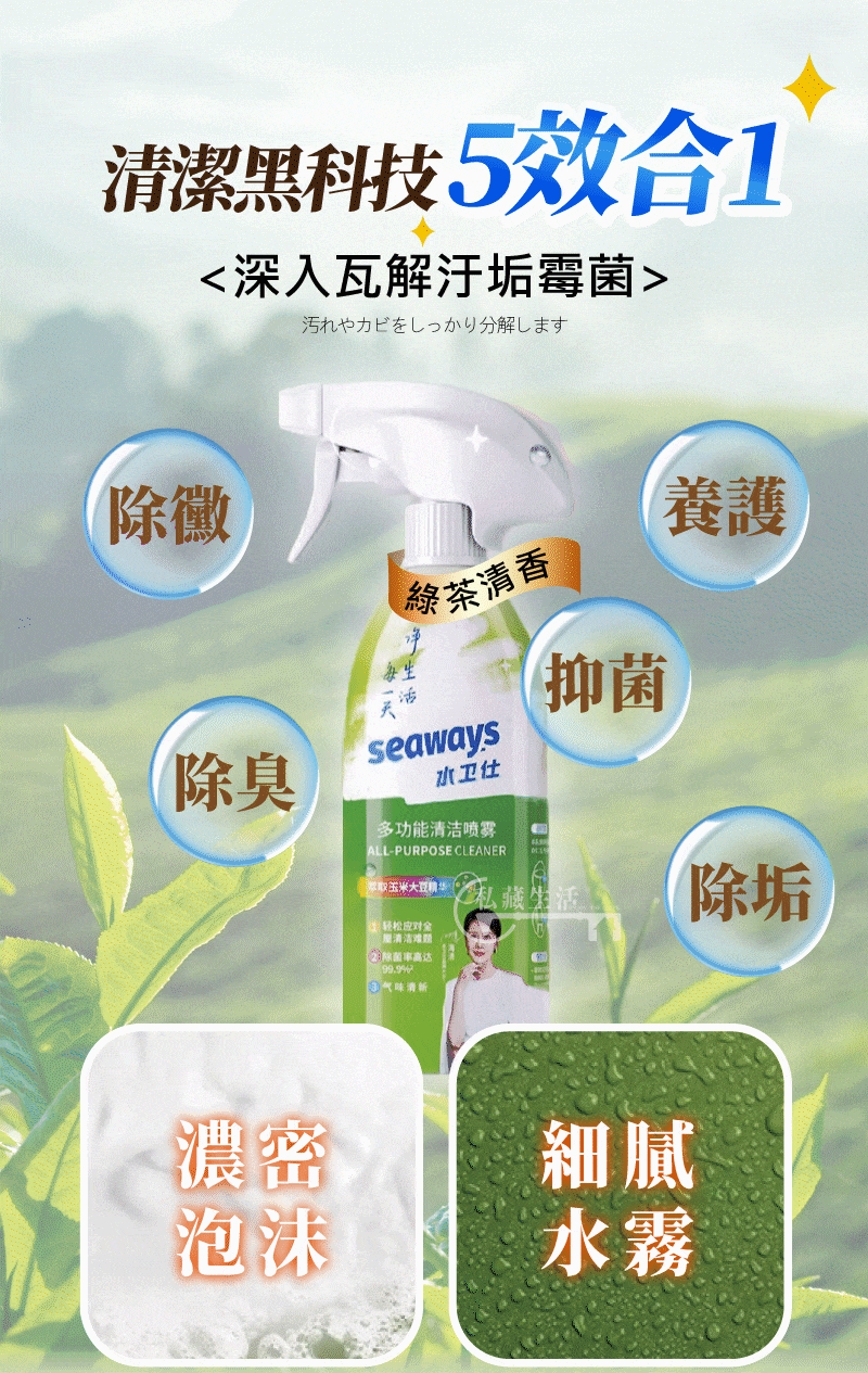 15分鐘前全屋煥然一新日本瘋搶除垢劑【Seaways極效潔垢劑】極效去汙X乾淨透亮 - 極效潔垢劑【6入】再享免運!