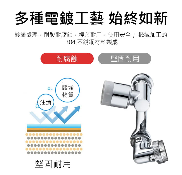 4分鐘前機械臂萬向水龍頭延長器 1080°自由旋轉,隨意伸縮 可直接漱口、沖臉、洗頭、清潔水池!防鏽防腐蝕,方便耐用! - 限時促銷【買二送二】4入組 僅需 -NT$950
