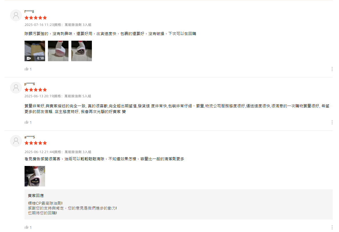 7分鐘前【夜市人生清潔劑】-(夜市人生水垢還原劑)適合各處殘留水垢,只清水垢,不傷手/不刺鼻,只要有水垢的地方通通清的起來!【夜市人生萬能除油劑】廚房救星!❗油污秒殺❗ 噴後10秒擦淨|網友狂推|頑固油漬剋星|輕鬆分解重油污 - 台灣製【夜市人生萬能除油劑】好用不傷手 買三送三 6組分享裝NT$1380(單瓶NT$230)