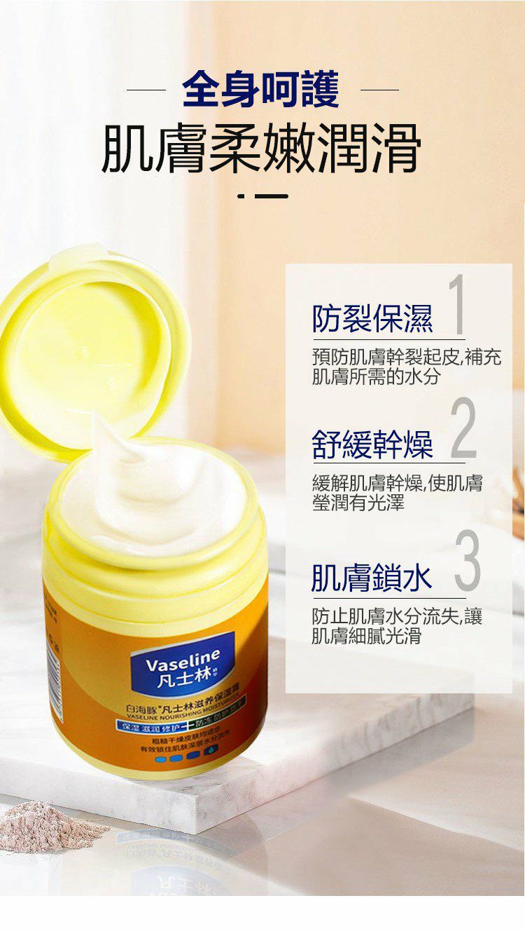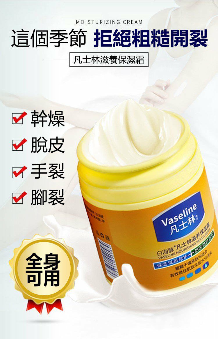 12分鐘前醫師推薦【凡士林滋潤補水保濕霜】#買三送二 到手五盒 一抹即潤 瞬間吸收!保濕修護 清爽不油膩 全身都能用。可以當面霜,護手霜,身體乳使用 - 【買三送二】到手5瓶-NT$899