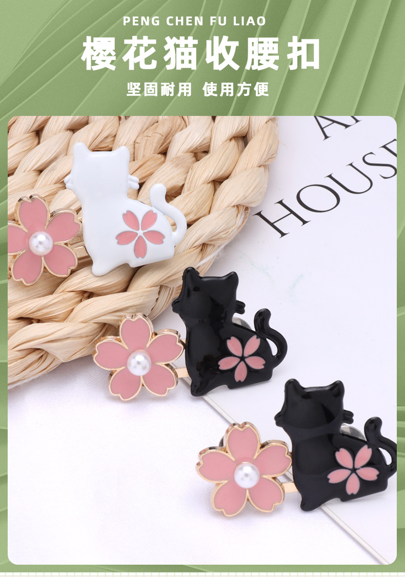 5分鐘前櫻花貓收腰扣 牛仔褲免縫免釘收腰扣 金屬扣 可拆卸鈕扣 褲子腰圍大改小收腰神器 合金固定扣 調節扣 - 優惠價3入組799