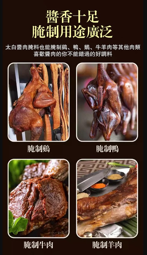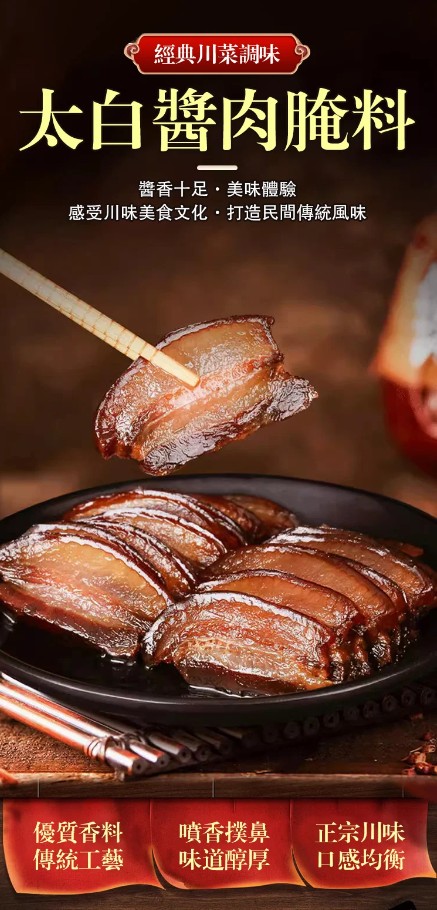 2分鐘前【一袋做6斤】太白醬肉醃料廚師兄川味風乾臘肉料300g/袋醬排骨猪肝 - 新品嘗鮮【太白醬肉醃料 300g/袋】3入組NT$980