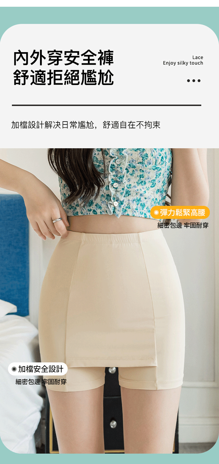 15分鐘前【雙盾防走光】三角區加密襯布+加寬蕾絲邊,大風劈叉也不泄密, 雙層安全褲加襠防走光 - 【整年套裝】九入組NT$1498